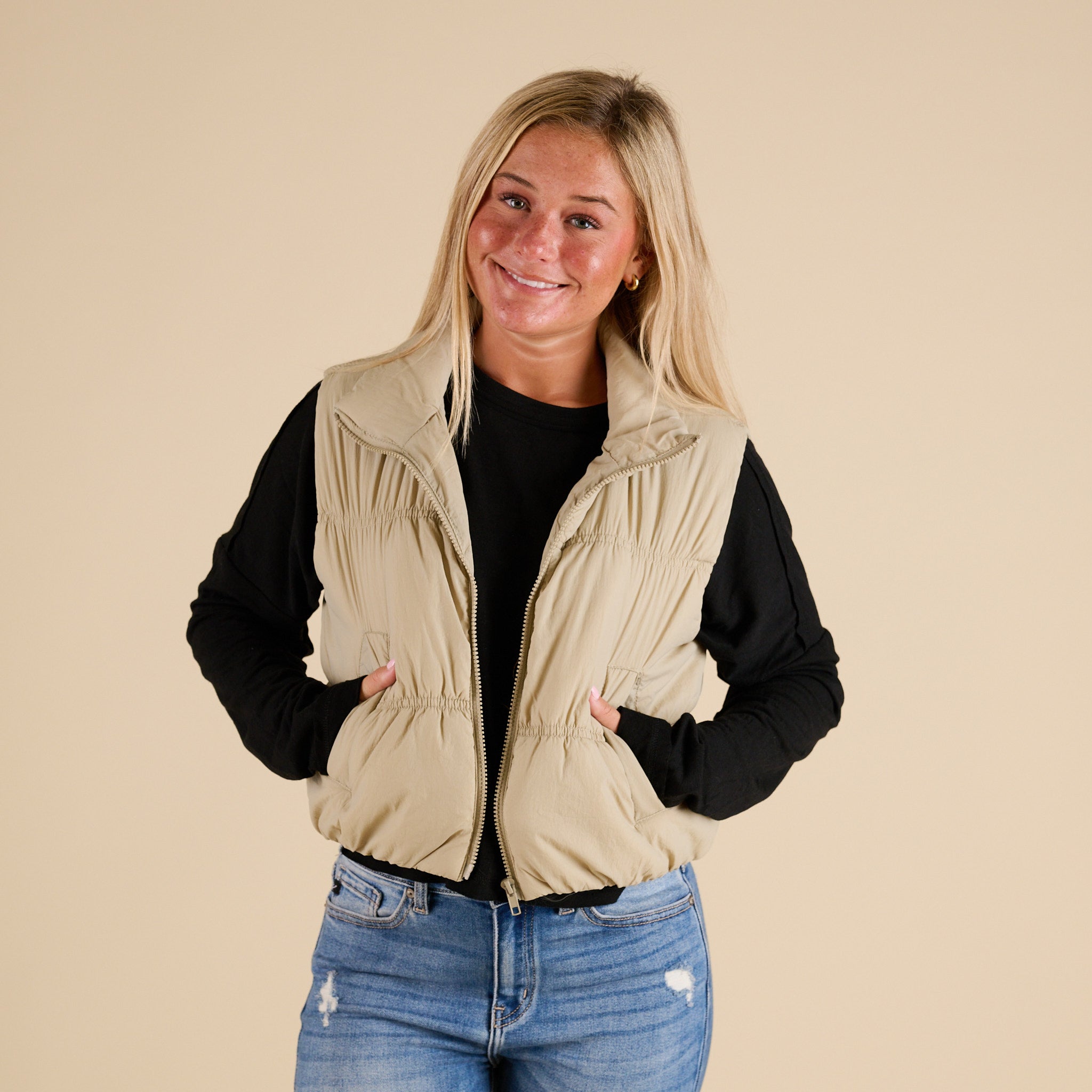 Layer up in style with the Blu Pepper Ruched Cropped Vest — a chic twist on a cold-weather classic. This cropped puffer features a ruched design for a flattering fit and cozy warmth that’s perfect for any casual outing.