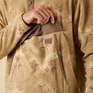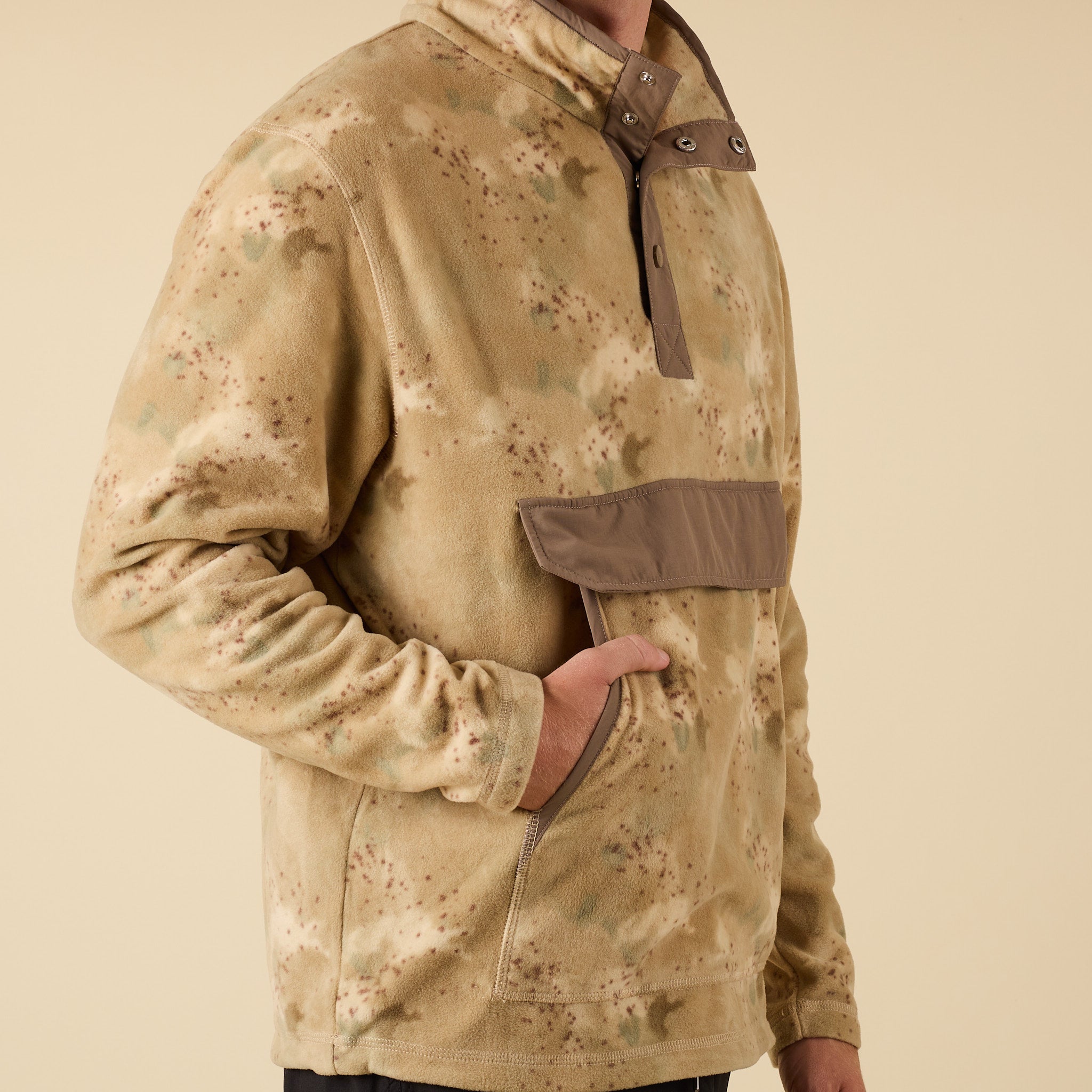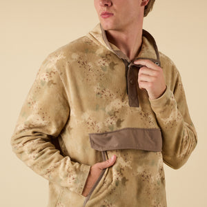Stay warm and ready for any adventure with the Crosby Fleece Quarter Snap Pullover. Featuring a soft, brushed fleece in a tan desert camo pattern, this pullover combines comfort with an outdoorsy edge. Designed with a front snap placket for easy layering and a secure flap pocket for essentials, it’s built for versatility whether you’re heading into the woods or just relaxing on the weekend. Finished with elastic cuffs and hem for a snug, flexible fit.