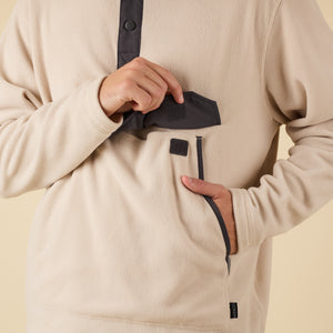 Add a rugged layer to your cold-weather lineup with the Crosby Fleece Quarter Snap Pullover in Oatmeal. This soft fleece pullover delivers warmth and comfort with a bold, outdoorsy look. The charcoal grey snap placket and flap pocket add contrast and function, while the relaxed fit makes it easy to wear over your favorite tees. Perfect for chilly mornings, campfires, or casual weekends.