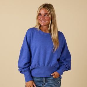 Description: Vintage washed crew-neck rounded bottom hi-lo fleece