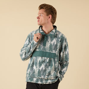 Bring the outdoors with you wherever you go in the Crosby Fleece Quarter Snap Pullover in Spruce Trees print. Featuring a soft, cozy fleece with an allover evergreen forest design, this pullover blends comfort and style for cool-weather adventures. The snap-front collar and front flap pocket add practical details, while the relaxed fit makes layering effortless. Perfect for campfires, weekend hikes, or laid-back days around town.