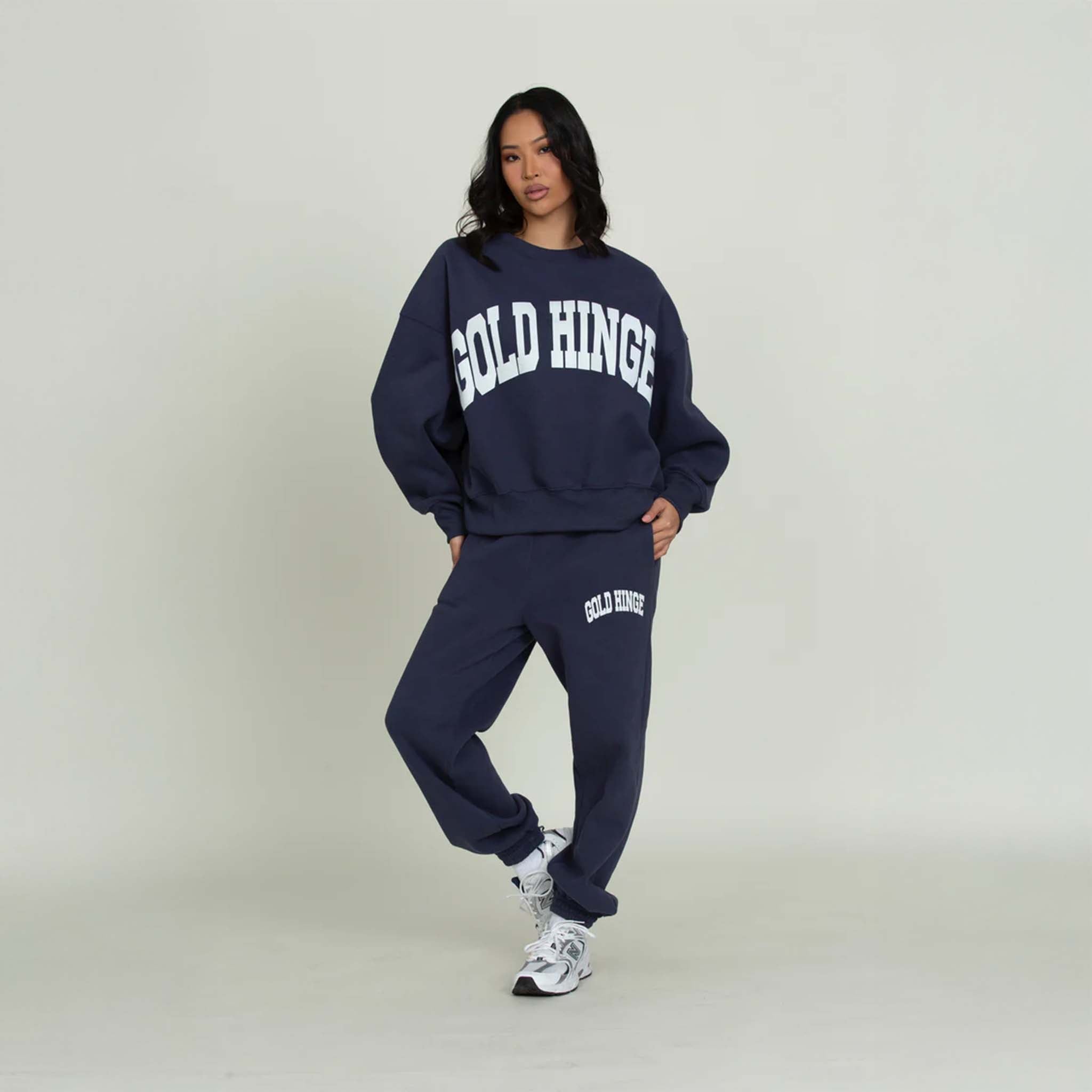 Stay cozy and stylish in the Gold Hinge Jogger Sweatpants. Made with a soft fleece interior and a relaxed fit, these joggers feature an elastic waistband and ankle cuffs for everyday comfort. The bold Gold Hinge logo detail adds a sporty finish, making them the perfect choice for lounging, running errands, or pairing with the matching crewneck for a complete set.