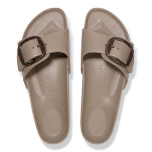 This is a new and modern interpretation of the BIRKENSTOCK classic Madrid. This version features our popular Big Buckle made from a stainless synthetic material and makes an impression with its durability and minimalist design. Modeled on the cork sandal, it is made from the ultra-lightweight and highly flexible synthetic material EVA. The high-quality, odor-neutral EVA has been tested for harmful substances and combines numerous positive attributes: it is very light, highly elastic, shock-absorbent, water-resistant, and skin-friendly.