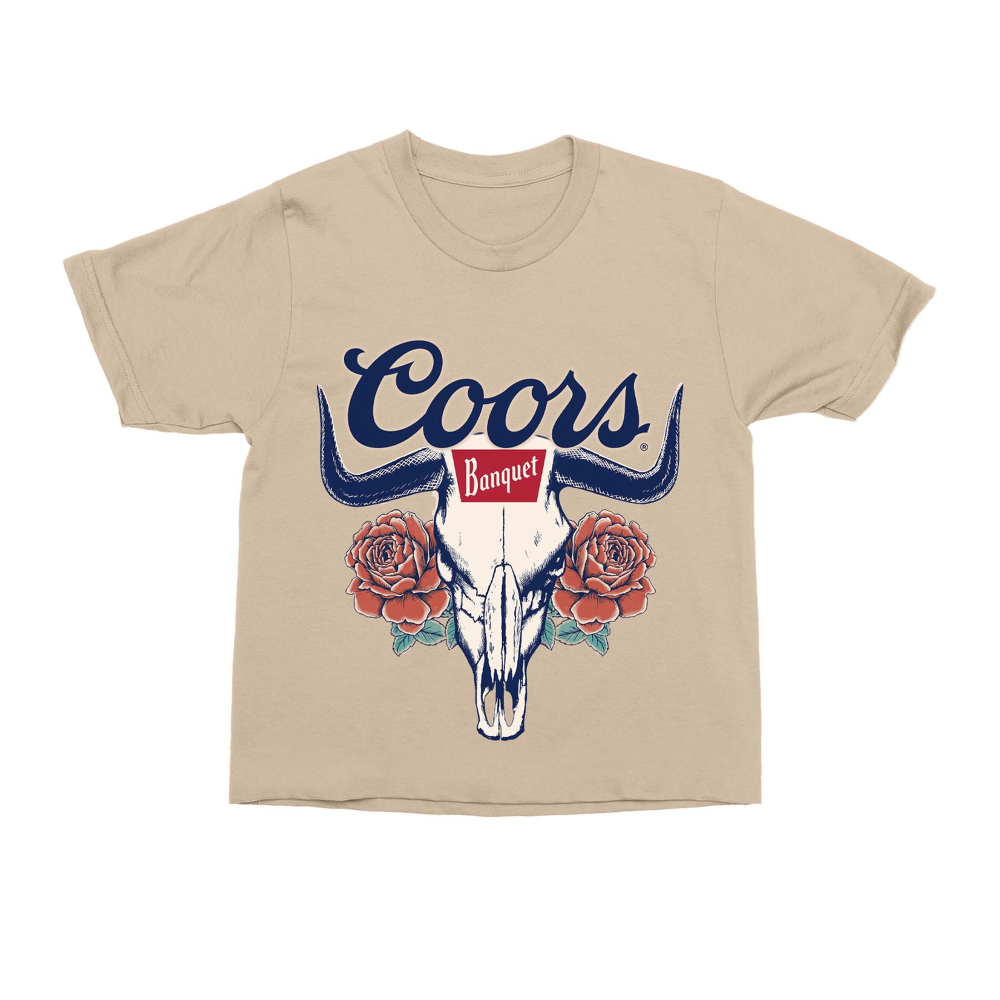 Coors Skull With Roses Cropped Short Sleeve T-Shirt