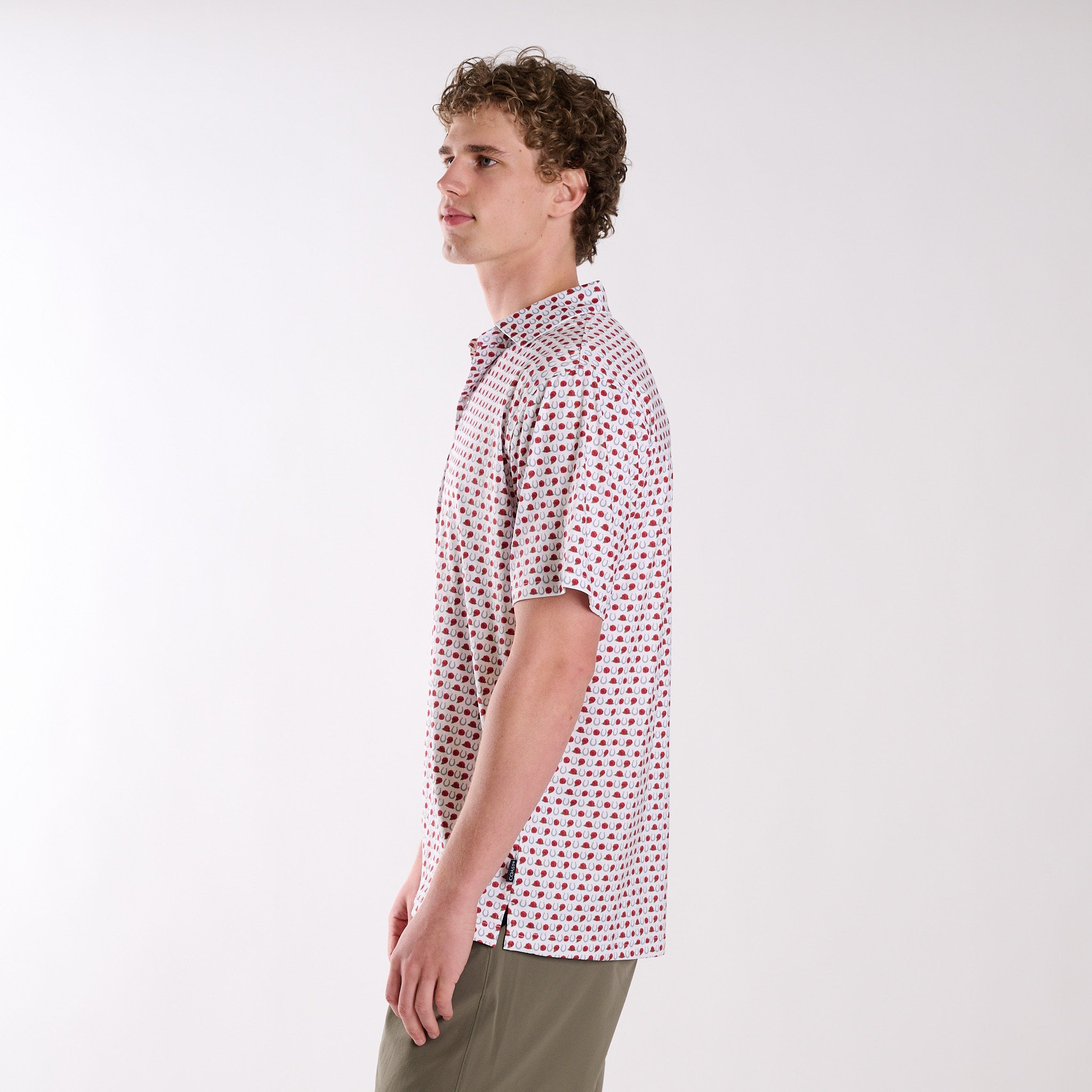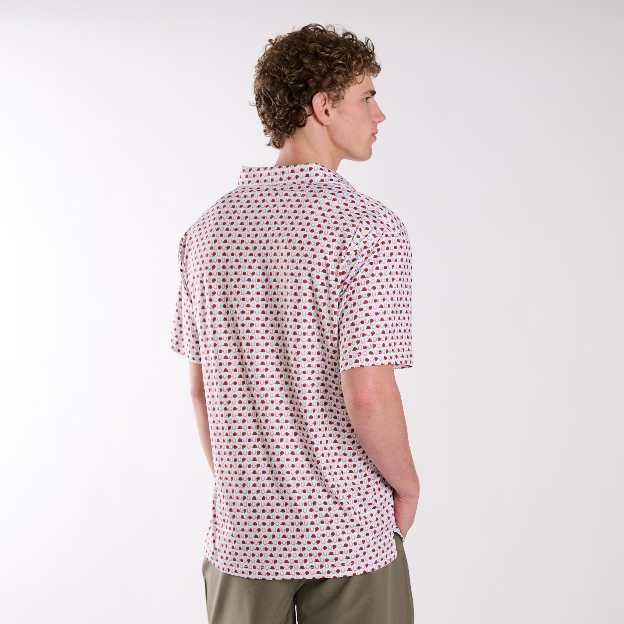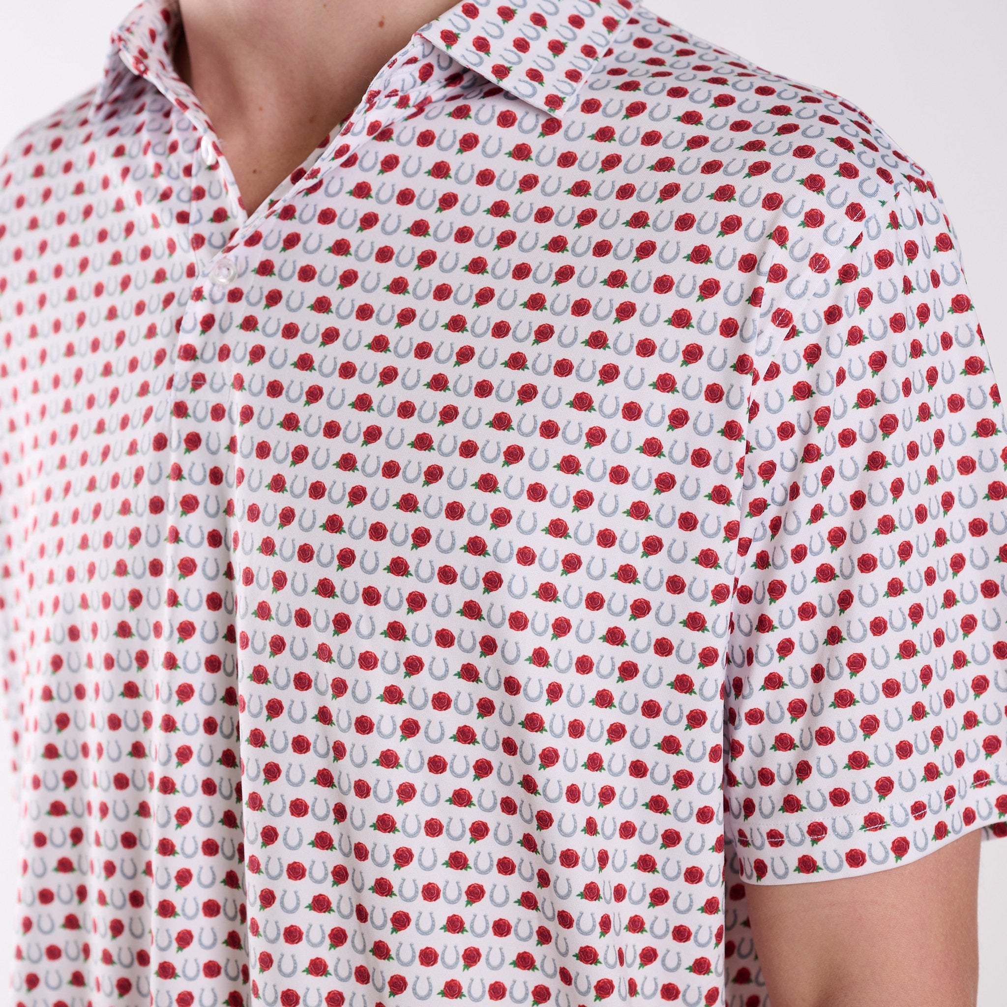 A fresh take on classic Southern style, this Kentucky-inspired polo blends tradition with everyday performance. Featuring an allover print of horseshoes and roses, this polo brings a subtle nod to heritage and charm while keeping your look polished from the course to casual outings.