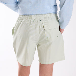 The COAST Seersucker Stripe Swim Shorts deliver classic coastal style with lightweight comfort made for warm days on the water. Featuring a subtle seersucker texture and clean vertical stripe pattern, these shorts bring a timeless look that transitions easily from beach days to dockside dinners.