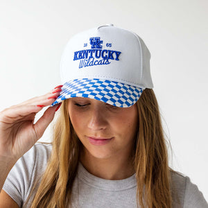 Cheer on the Wildcats in classic style with this Kentucky Wildcats Checkered Brim Hat. Featuring bold embroidered team graphics and a signature blue and white checkered bill, this hat brings game-day energy to any outfit. The structured crown and adjustable back ensure all-day comfort and a perfect fit. A must-have accessory for true Kentucky fans.
