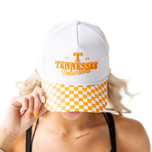 Show your Volunteer pride with this Tennessee Volunteers Checkered Trucker Hat. Featuring bold embroidered team graphics and the iconic orange-and-white checkerboard bill, this cap brings game day energy to any outfit. The structured design ensures a comfortable fit, while the adjustable back closure makes it easy to style your way. Perfect for fans ready to represent the Vols in true Rocky Top fashion.