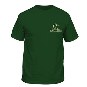 Show your support for conservation in classic outdoor style with this Ducks Unlimited short sleeve t-shirt. Made from soft, breathable cotton, this tee features the Ducks Unlimited logo on the front and a bold back graphic with crossed camo shotguns, a retriever silhouette, and the established date—perfect for hunters, dog lovers, and DU supporters. Comfortable, durable, and great for everyday wear in the field or around town.