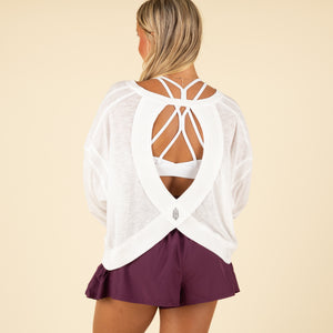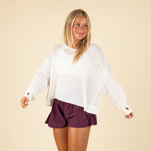 Perfect for going to or from a workout, this layer features a soft fabrication, slouchy crop and flattering back opening.