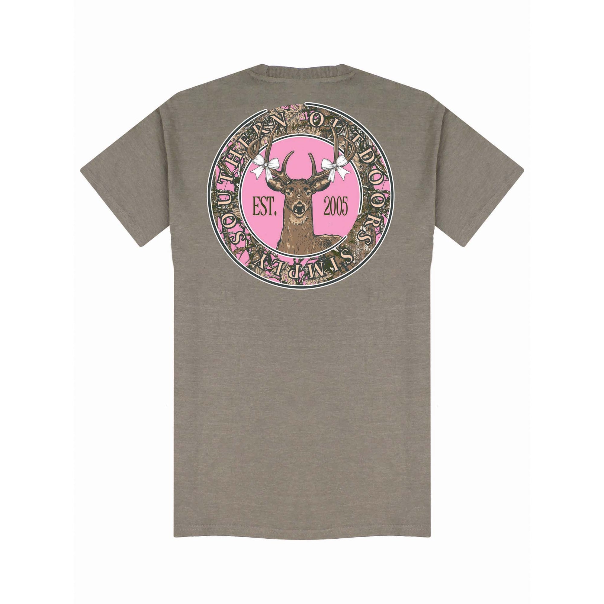 Youth Deerly Pink Camo Short Sleeve T-Shirt in Storm Grey