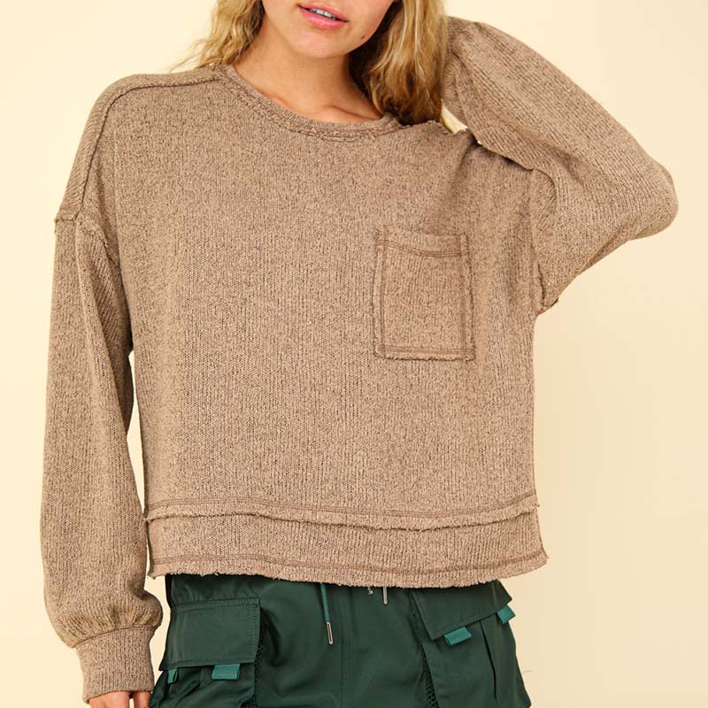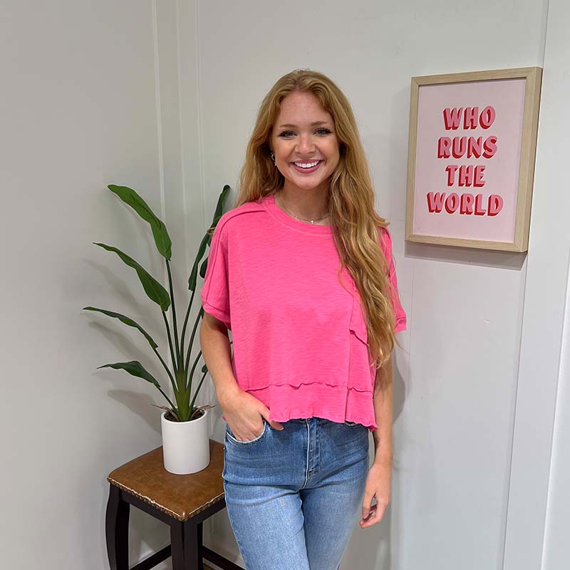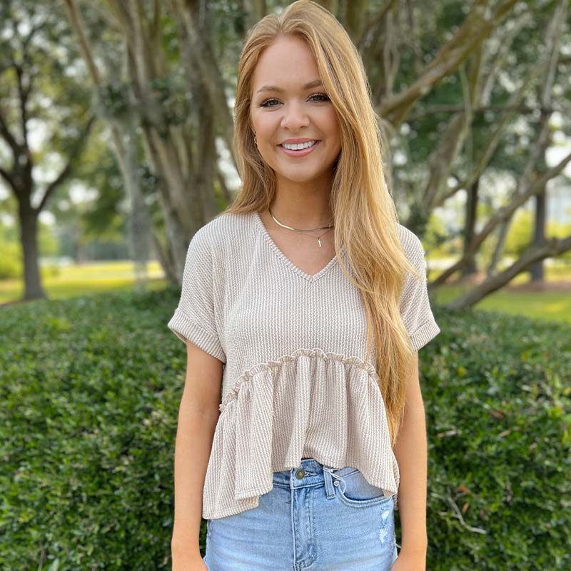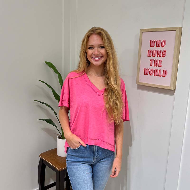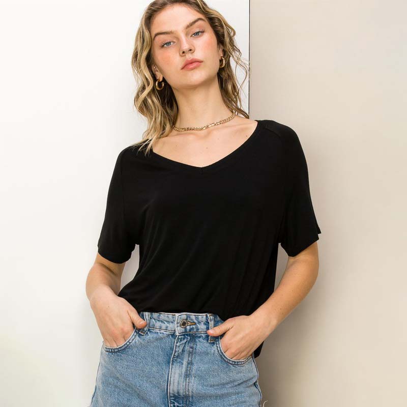 Jolie Clothing Short Sleeve Raw Edge V-Neck Top $24.99
