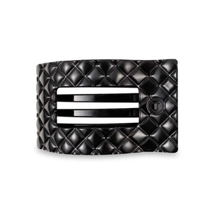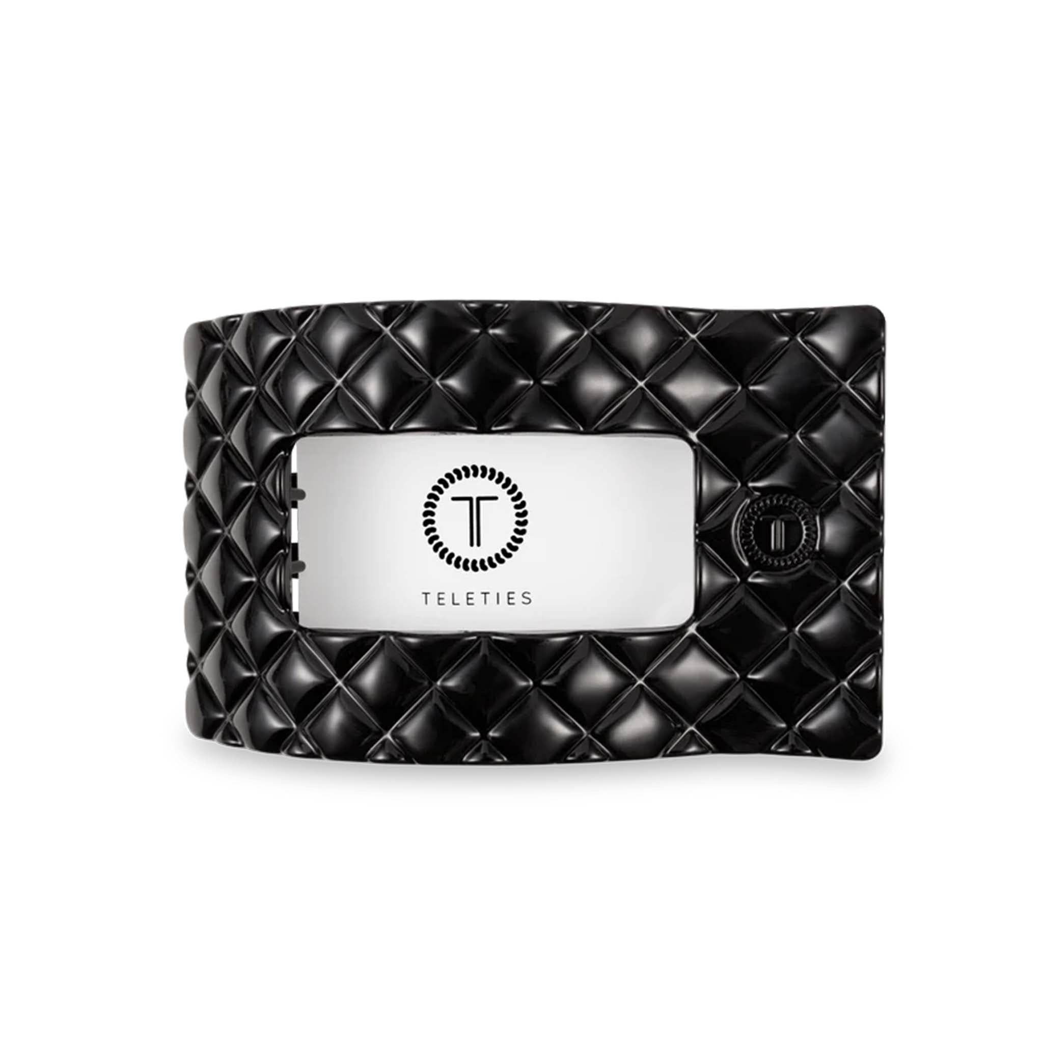 Lean back and relax - comfort just got a new shape. Introducing the TELETIES Jet Black Quilted Large Flat Rectangle Hair Clip, the newest addition to our best-selling Flat Clip Collection. Joining the original Round and Square styles, this elevated rectangular design offers the same flat-back comfort and stronghold TELETIES is known for - now with a sleek, modern style.