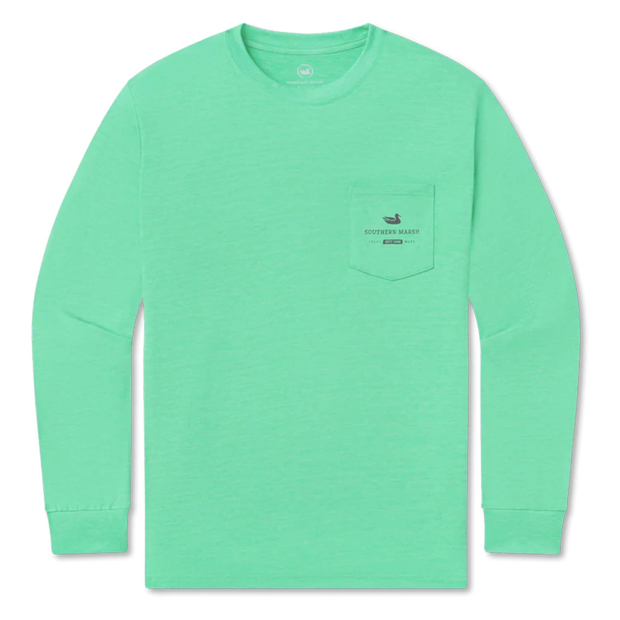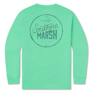 Whether you’re fishing or just cruising on the boat, the FieldTec™ Heathered Long Sleeve Marlin Time Tee will keep you cool and shielded from the sun’s harmful rays. Marlin are considered by many to be the pinnacle of offshore game fishing, so we had to make this species the center of this custom design. The border resembles the face of a compass, and the cursive text contrasts with the thick, brushed lettering underneath to create a nautical look you'll love. Crafted with our moisture-wicking performance fabric that’s ultra-stretchy and soft to the touch, this lightweight t-shirt will keep you comfortable and dry. Finished with a signature mallard silhouette logo on the front pocket and a printed neck tag.