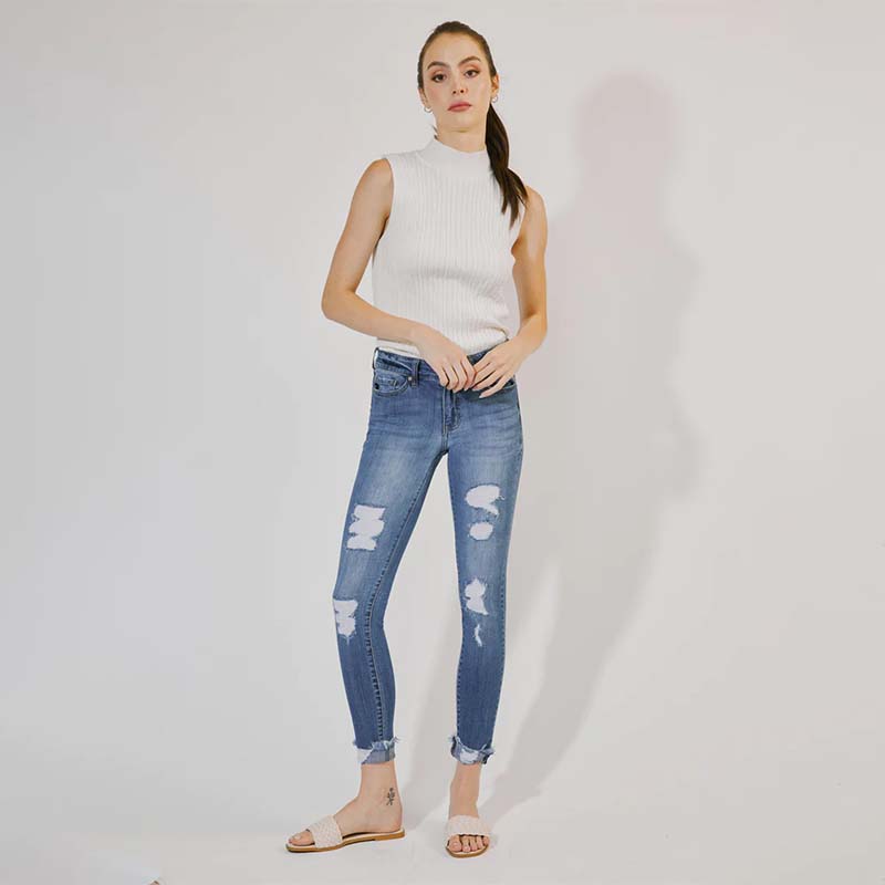 KanCan Denim The Distressed Knee Straight Jeans Sold Out