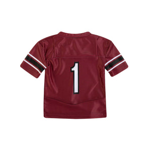 Get your little Gamecock ready for the season in this toddler-sized Under Armour South Carolina football jersey! Featuring a bold "Carolina" wordmark and player number 1 on the front and back, this cardinal red jersey delivers big team spirit in a mini fit. Lightweight and breathable, it's perfect for cheering on the Gamecocks from the stands or the couch.