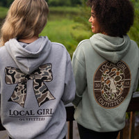 Local Girl Outfitters Local Girl Camo Bow Hoodie in Heather Grey $50.00