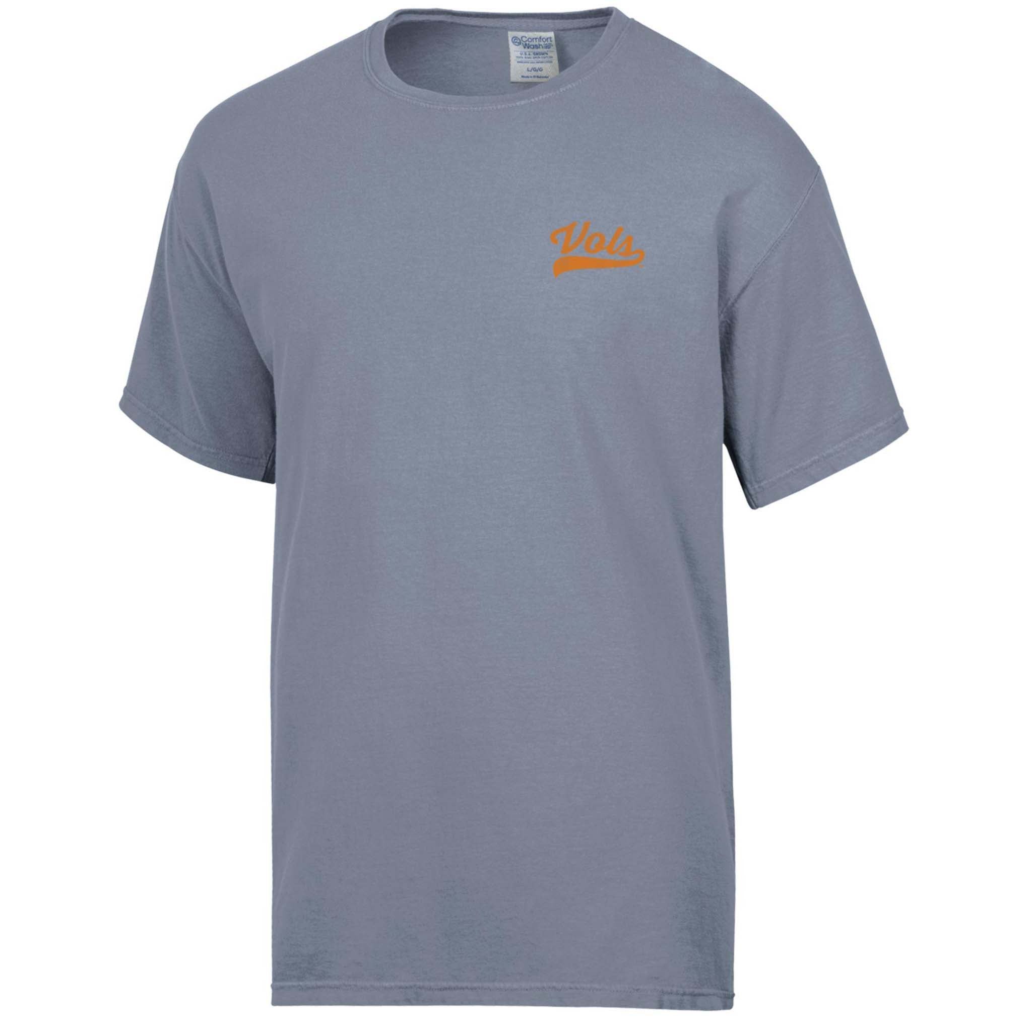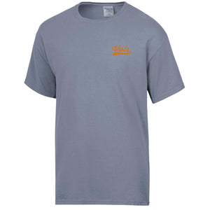 Cheer on the Vols in this University of Tennessee T-Shirt. Featuring a bold back graphic of the iconic Ayres Hall with “University of Tennessee” lettering and a front chest “Vols” script logo, this tee is built for true fans. Crafted from soft cotton fabric, it’s perfect for gamedays, campus wear, and showing your Tennessee pride anywhere.