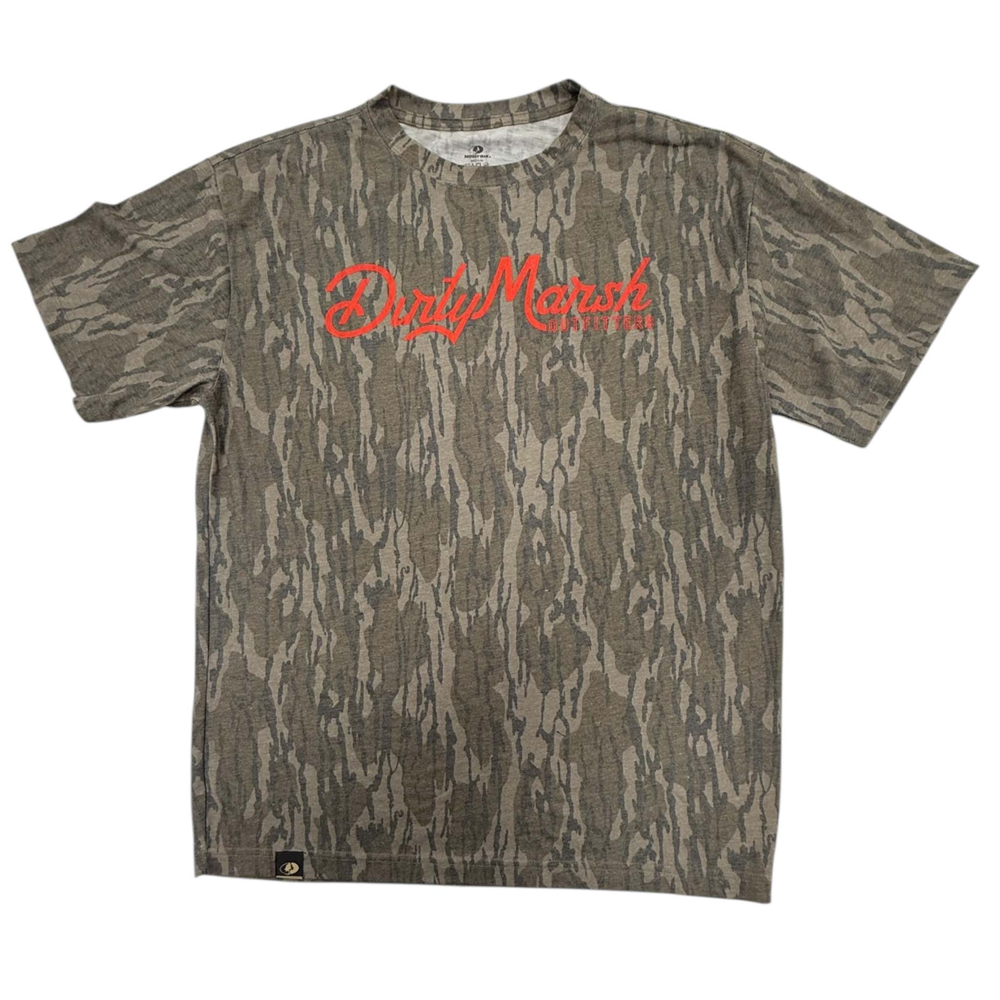 Stand out in classic outdoor style with the Dirty Marsh Short Sleeve T-Shirt. Featuring a Mossy Oak Bottomland camo pattern, this tee is accented with a bold blue Dirty Marsh logo on the back and matching chest print. Made from soft, breathable fabric, it’s perfect for days in the field or laid-back weekends by the water.