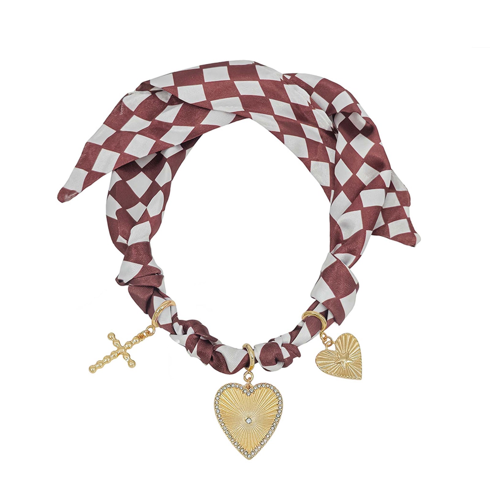 What's Hot Jewelry Burgundy and White Scarf Necklace with Charms Sold Out