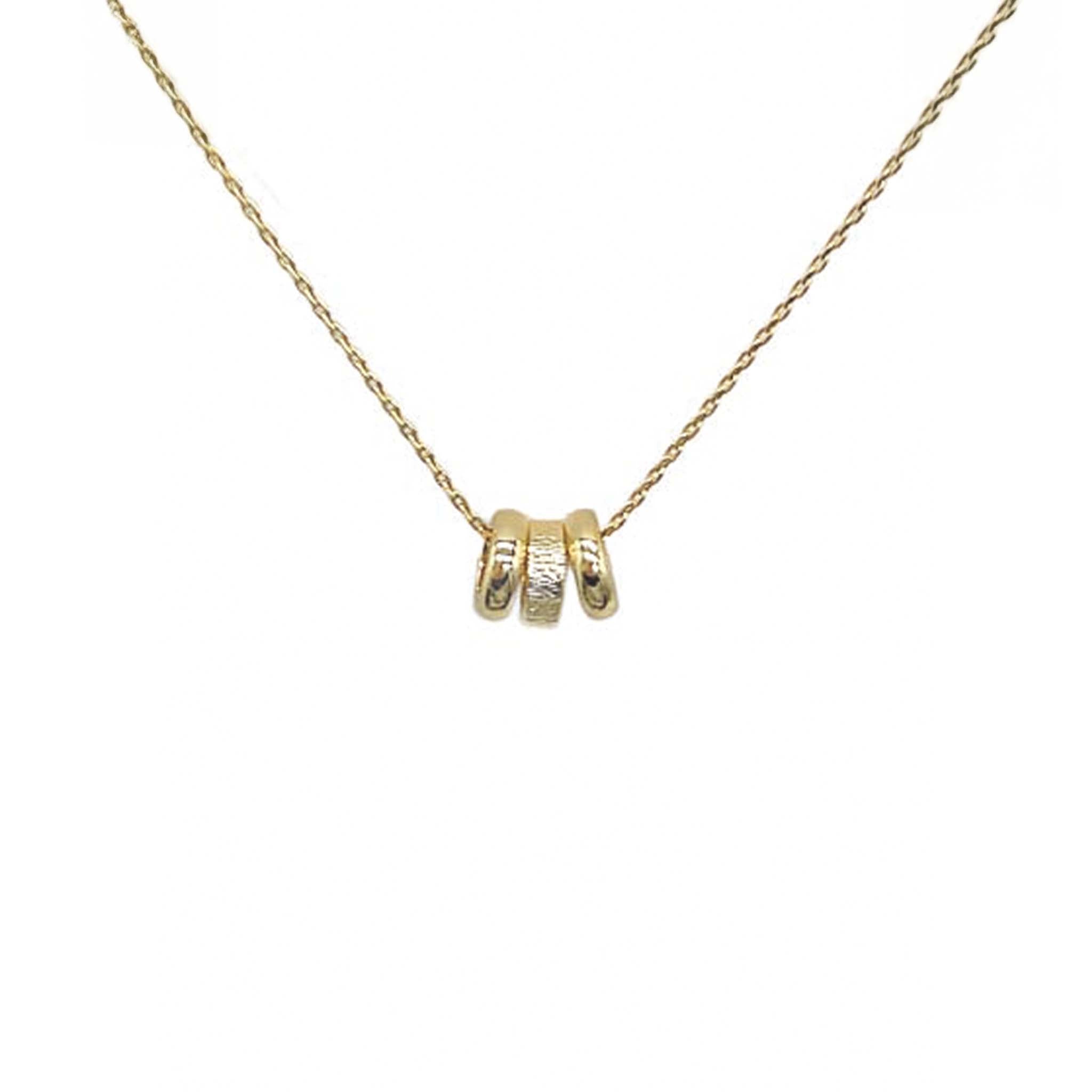 Sleek and symbolic, this Triple Ring Pendant Gold Necklace brings timeless style with a modern edge. Featuring three interlocking gold-tone rings suspended from a delicate chain, this necklace represents connection, balance, and effortless elegance. Its minimalist design makes it perfect for everyday wear, whether worn solo for a refined look or layered with other favorites.