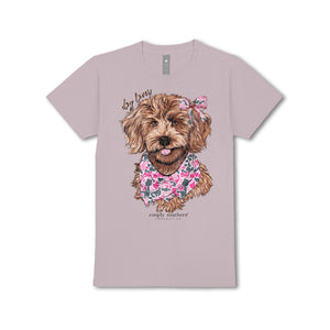 • Front graphic: illustrated dog with pink camo bow & bandana