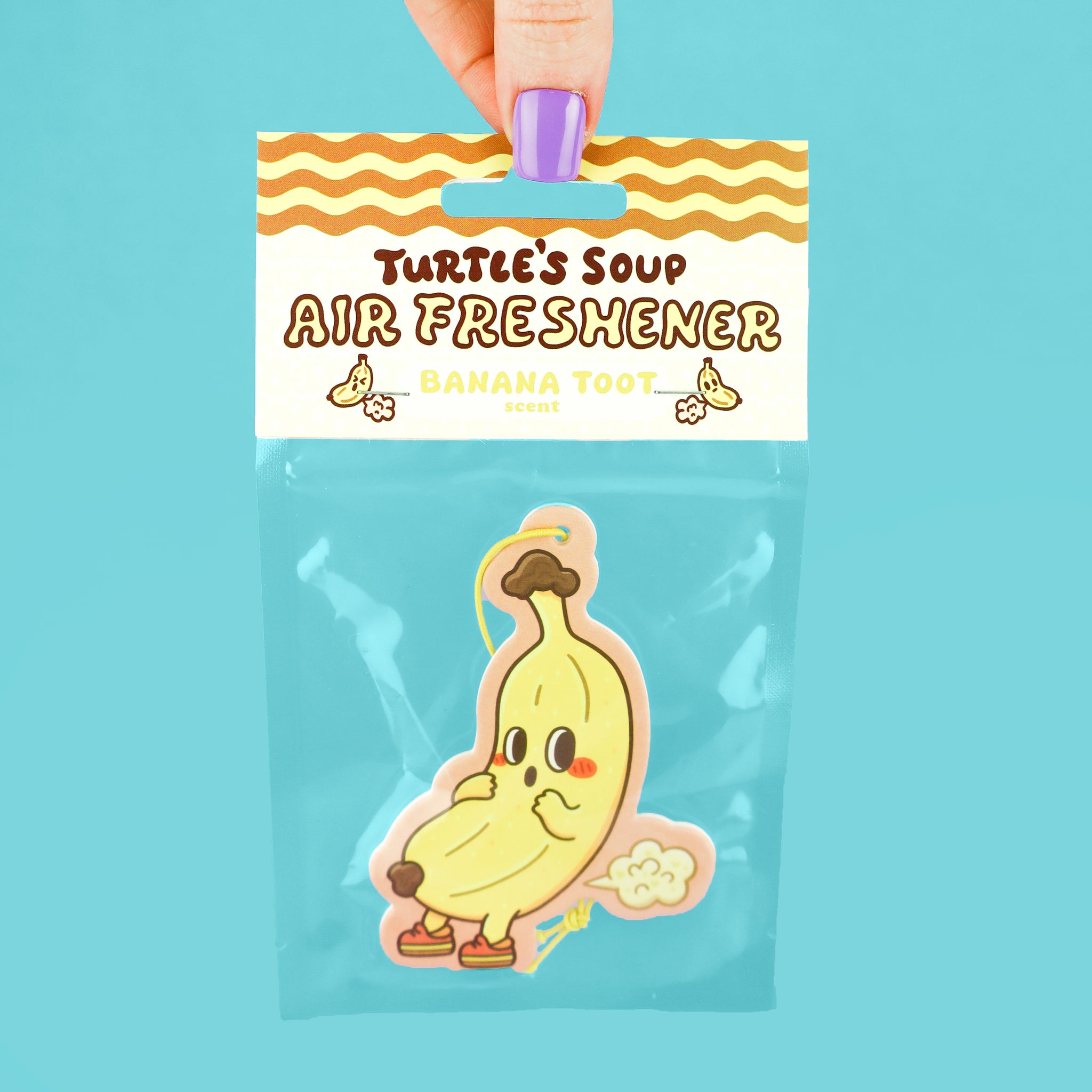 This gassy little nanner can’t help himself! Thank goodness his toots smell like the delicious yellow fruit, or else you would be in for a stinky car ride.