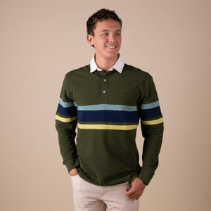 Add a classic touch to your wardrobe with this Simply Southern Men’s Rugby Shirt. Featuring bold color-blocked stripes and a crisp white collar, this long-sleeve polo blends casual comfort with timeless style. Perfect for layering or wearing solo, it’s a versatile pick for everyday wear.