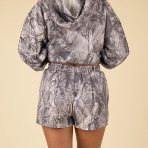 Add a bold, comfy touch to your casual style with the Blake Camo Shorts. These soft lounge shorts feature an allover neutral camo print with an elastic waistband and adjustable drawstring for the perfect fit. Designed with side pockets and a relaxed silhouette, they’re ideal for lounging, weekend errands, or pairing with your favorite hoodie for a coordinated look.