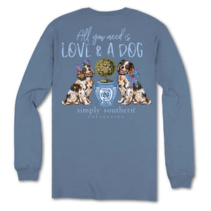 Show your love for man’s best friend with the Simply Southern “All You Need Is Love & A Dog” Long Sleeve T-Shirt. This cozy cotton tee features a sweet back graphic with two dogs sitting beside a blue chinoiserie-style planter, paired with the uplifting phrase across the top. A small Simply Southern Collection logo accents the front chest for a timeless look. Perfect for dog lovers who adore classic Southern charm and comfort.