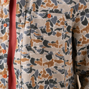 Stay warm and stylish with the Simply Southern Men’s Brushed Fleece Shacket. Perfect for layering in cooler months, this versatile piece combines the comfort of fleece with the look of a button-up shirt. Featuring an allover camo print, classic collar, button-down front, button cuffs, and a functional chest pocket with the Simply Southern logo, it’s built for both everyday wear and outdoor adventures. Made of a soft, flexible blend of 95% polyester and 5% spandex, this shacket delivers cozy warmth without sacrificing mobility.