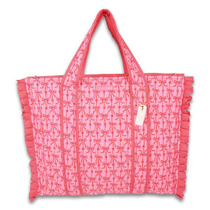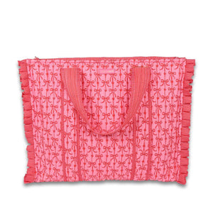 Carry your essentials in sweet Southern style with the Simply Southern Quilted Bow Tote Bag. Featuring an all-over bow print, quilted construction, and ruffled edge trim, this tote blends charm and functionality effortlessly. The roomy interior makes it perfect for everyday errands, beach days, travel, or as a cute carry-all for busy days on the go.