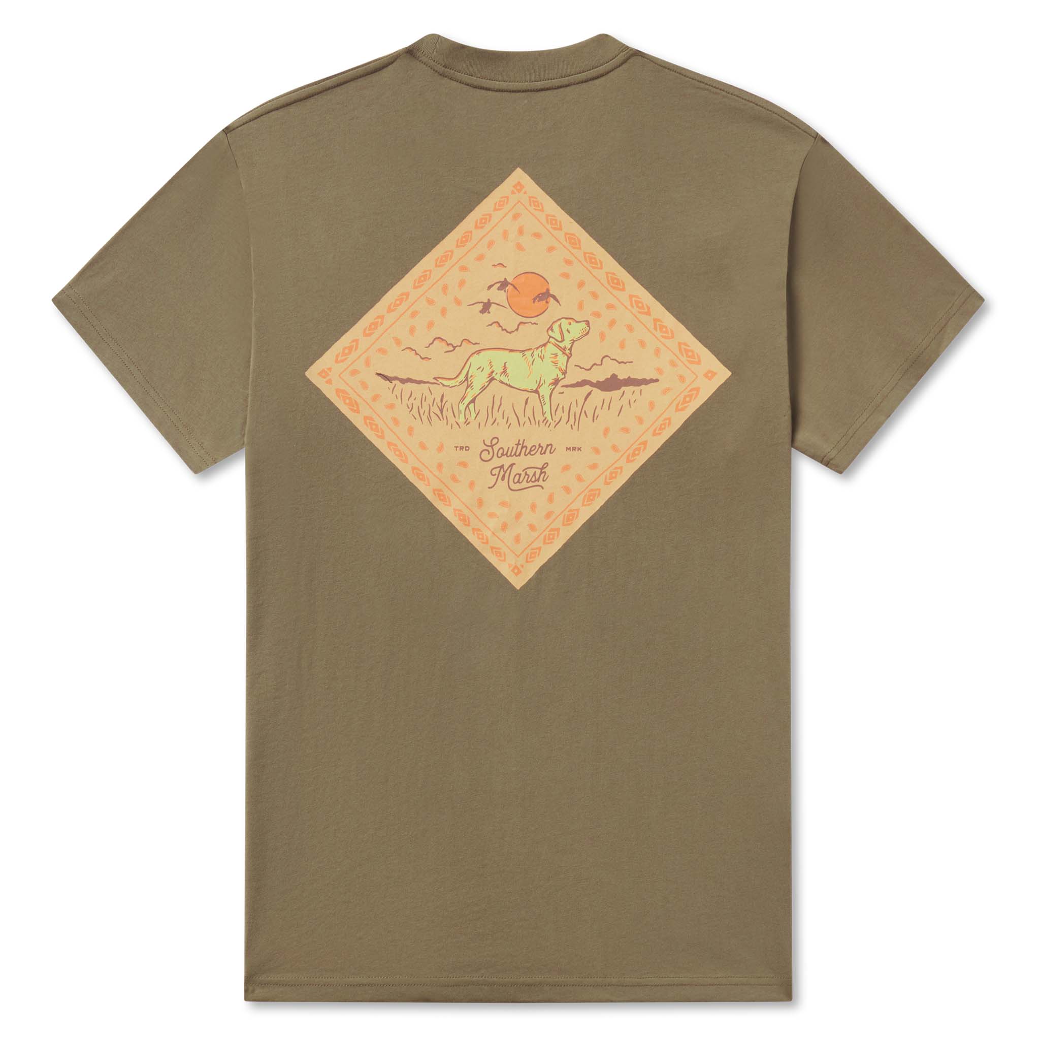 In the spirit of that first light morning hunt, the Bandana Best Friend Tee is designed for the sportsman and dog lover alike. Featuring man's best friend with a bandana inspired frame, These comfortable cotton tees have a handy front pocket and come with a printed neck tag for added comfort.