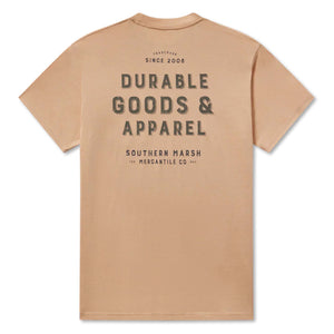 Breathable and lightweight, our SEAWASH™️ - Durable Goods short sleeve tee features a vintage western inspired logo design and handy front pocket. Made for comfort and all day wear, this tee is perfect for layering with our fleece pullovers and canvas jackets.