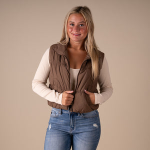 Layer up in style with the Blu Pepper Ruched Cropped Vest — a chic twist on a cold-weather classic. This cropped puffer features a ruched design for a flattering fit and cozy warmth that’s perfect for any casual outing.