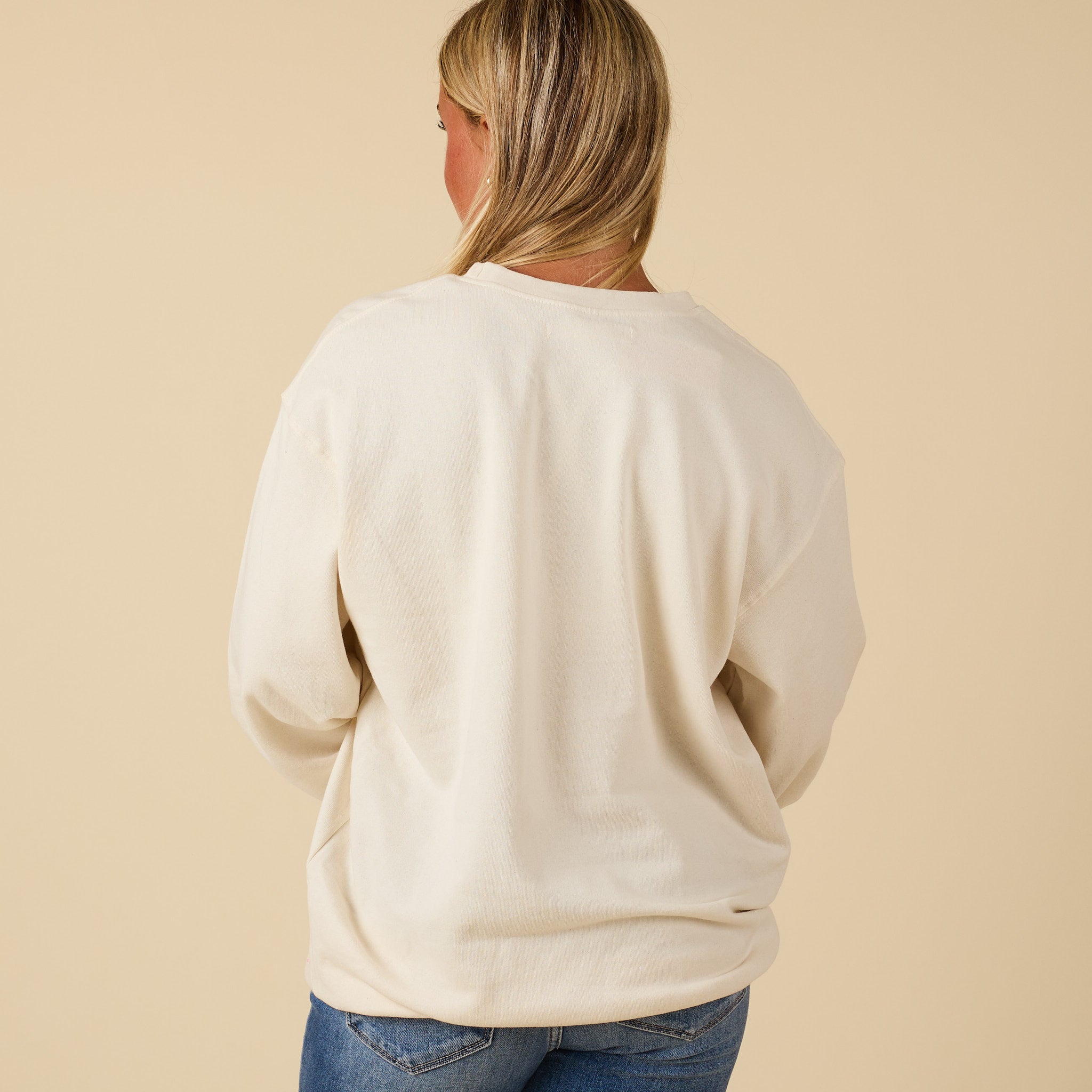 Sand-colored crewneck sweatshirt