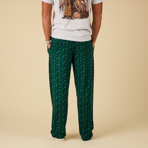 Relax in comfort with these Woodsy Pajama Pants, designed for cozy nights and laid-back mornings. Featuring a soft fabric blend and a relaxed fit, these pants are patterned with an allover woodland print of deer and trees in a deep green hue. The elastic waistband provides a secure, flexible fit, making them perfect for lounging or sleeping in style.