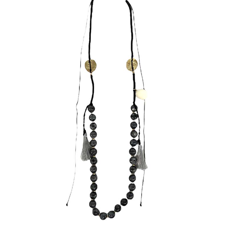 What's Hot Jewelry Garnet and Black Scarf Necklace with Charms Sold Out