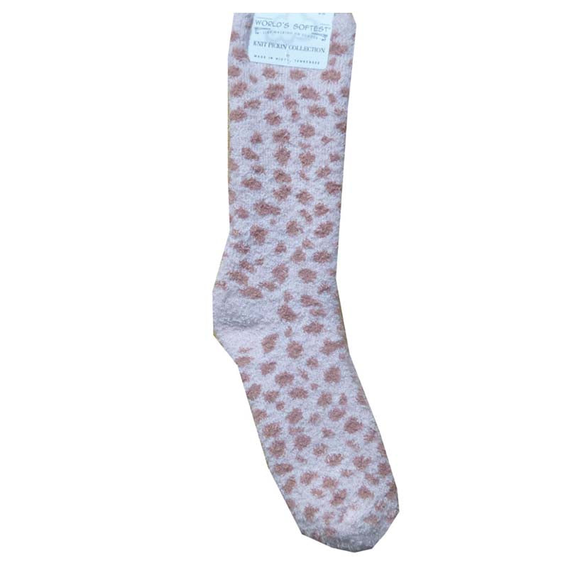 Worn West Cozy Leopard Knit Socks in Pink Sold Out