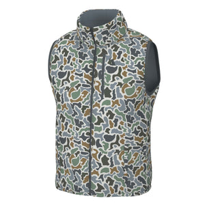 Two birds, one stone. The duck down vests are the epitome of versatile outerwear! This piece offers two distinctive looks in one, making it a valuable addition to any wardrobe. It features a reversible design with one side offering a classic, brick quilted two-toned look with the reversed side showcasing some of our infamous camo prints. As if it couldn't get any better, both sides feature a zipper chest pocket and our signature dog and moon chest embroidery!