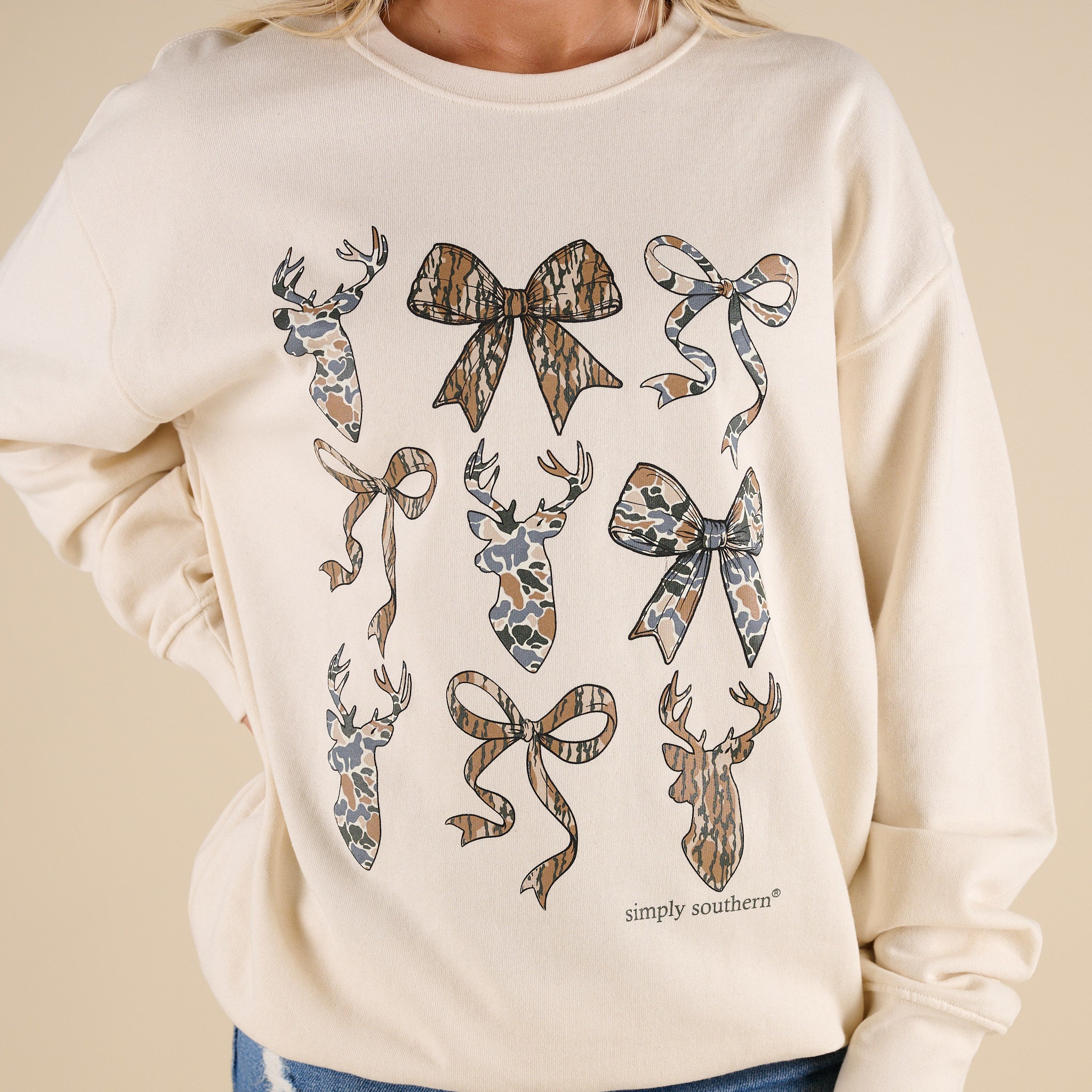 Make a bold and playful statement with this Simply Southern sweatshirt featuring camo deer head and camo bow grid. Crafted with a soft, cozy feel and a relaxed fit, it’s the perfect throw-on for everyday comfort. Whether you’re running errands or lounging at home, this stylish sweatshirt brings a touch of fun to any casual look.