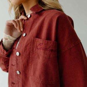 Layer up with Gamecock pride in this University of South Carolina Cropped Twill Jacket. Designed in a rich maroon shade, this jacket features “Carolina” embroidery on the front pocket and bold “Carolina Gamecocks” lettering across the back. The cropped cut gives it a modern, stylish edge, making it the perfect piece for game days, tailgates, or everyday wear.