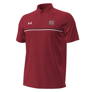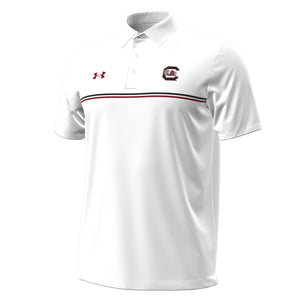 Elevate your Gamecock style with this Under Armour South Carolina performance polo. Featuring a sleek stripe detail across the chest, this polo combines team spirit with classic design. The embroidered South Carolina logo and Under Armour logo add the perfect finishing touch. Lightweight and breathable, it’s ideal for gameday, the golf course, or the office.