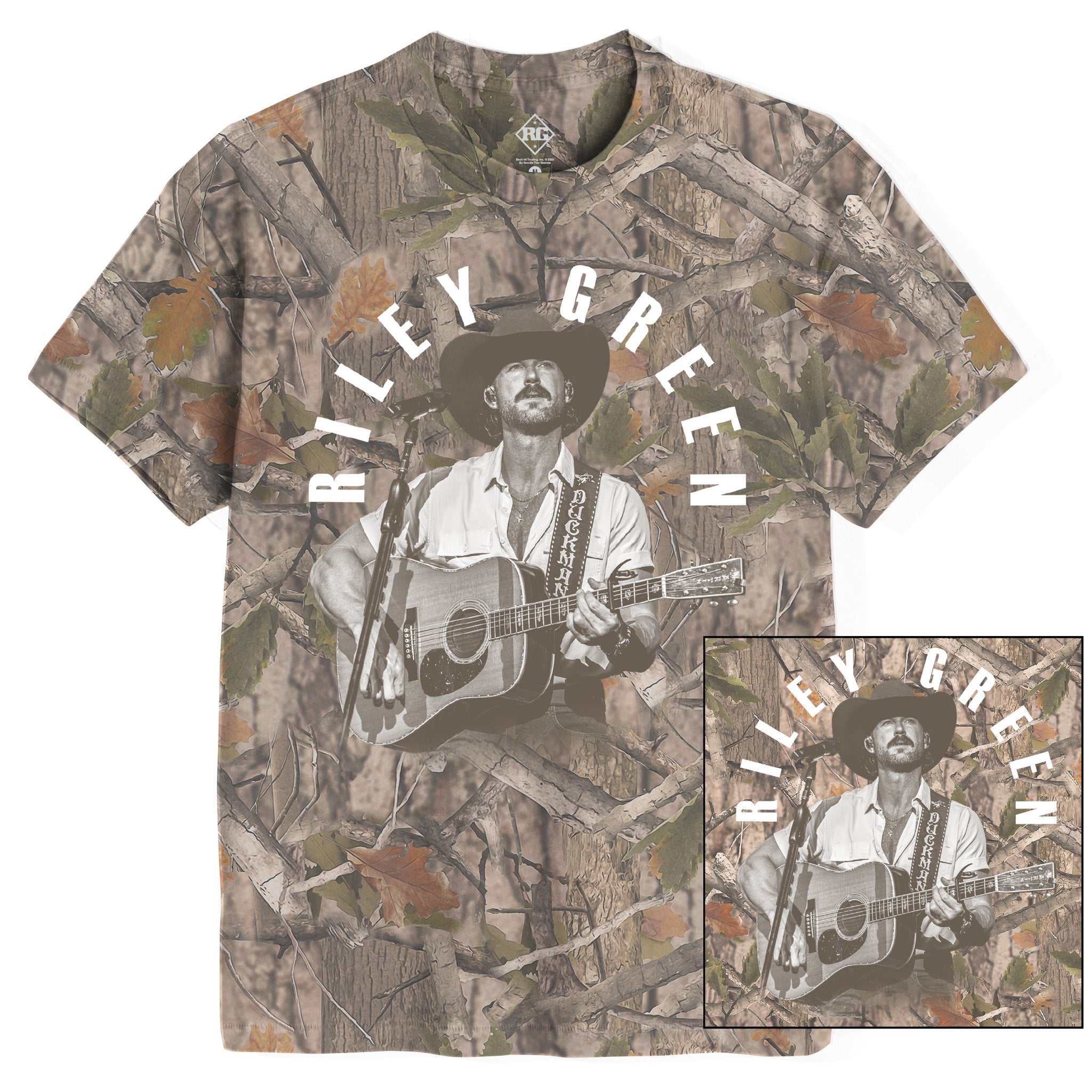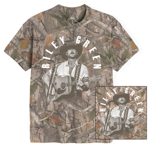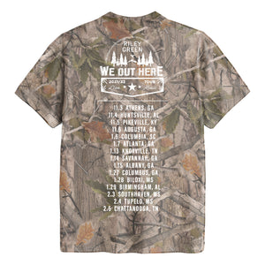 Show off your country roots with the Riley Green Camo Out Here Tour Short Sleeve T-Shirt. Featuring an allover camo print with a bold Riley Green graphic on the front and tour details on the back, this tee brings together outdoor style and concert-ready edge. Whether you're heading to a show or just keeping it casual, it’s a standout piece for any fan.
