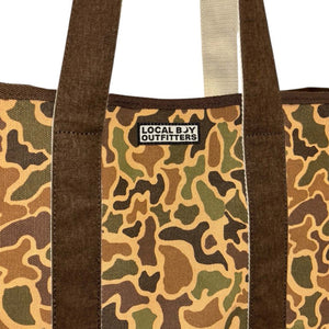 Tackle the day in Southern style with the Local Boy Boat Tote. Featuring a durable Old School Camo canvas body with dark brown accents, this tote blends outdoor charm with everyday function. Perfect for the beach, tailgates, or errands.