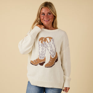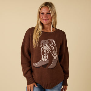 Cozy up in Western-inspired style with this cowboy boot graphic sweater. Featuring a relaxed fit and soft knit fabric, this playful pullover is perfect for cool-weather days. The bold boot design adds a rustic, country-chic vibe, making it a standout piece whether you’re headed to the rodeo, a fall festival, or just keeping casual. Pair it with jeans and boots for a complete look.