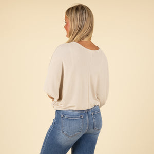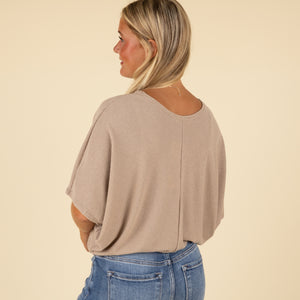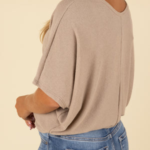 Embrace effortless style and comfort with our Short Sleeve Miter Ribbed Cocoon Top. This relaxed-fit essential features a soft ribbed texture and cocoon-style silhouette that drapes beautifully over your frame. The subtle center seam and wide sleeves add a touch of modern flair, while the scoop neckline keeps it casual and easy to layer. Pair it with jeans or leggings for an elevated everyday look.