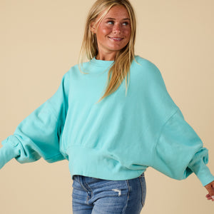 Description: Vintage washed crew-neck rounded bottom hi-lo fleece