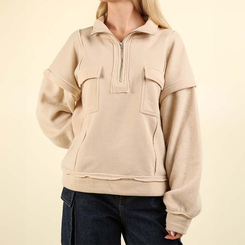 Exposed Seam Mock Neck Sweater