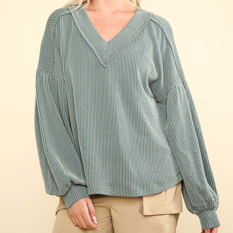 Ribbed V-Neck Button Down Long Sleeve Sweater